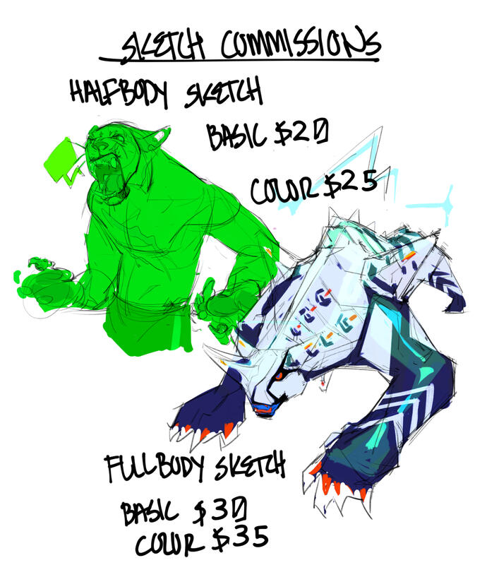 Bust: $150Waist Up: $250Fullbody: $350Extra Character: +$100 (Fullbody only)